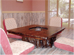 炉裏に、時には座卓に。サイズも大きめのため余裕で八人座れ、