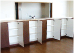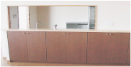 収納棚で囲まれます。