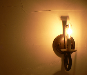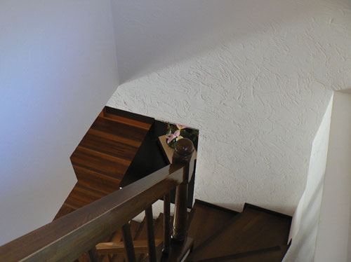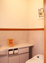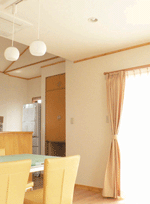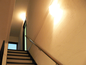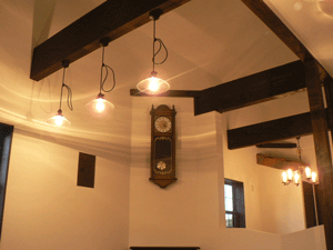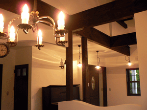 ます。お施主様のこだわりで、ランプ風の照明やアンテーク小物がコーディネートされ、塗り壁の持ち味を充分に表現でき