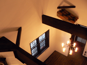 柱や梁を濃い茶系に着色することで、ダイアトーマスのもつ自然の質感が落ち着いたアンテークの風合いを創り出しており